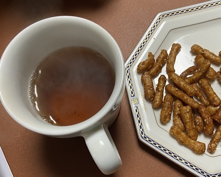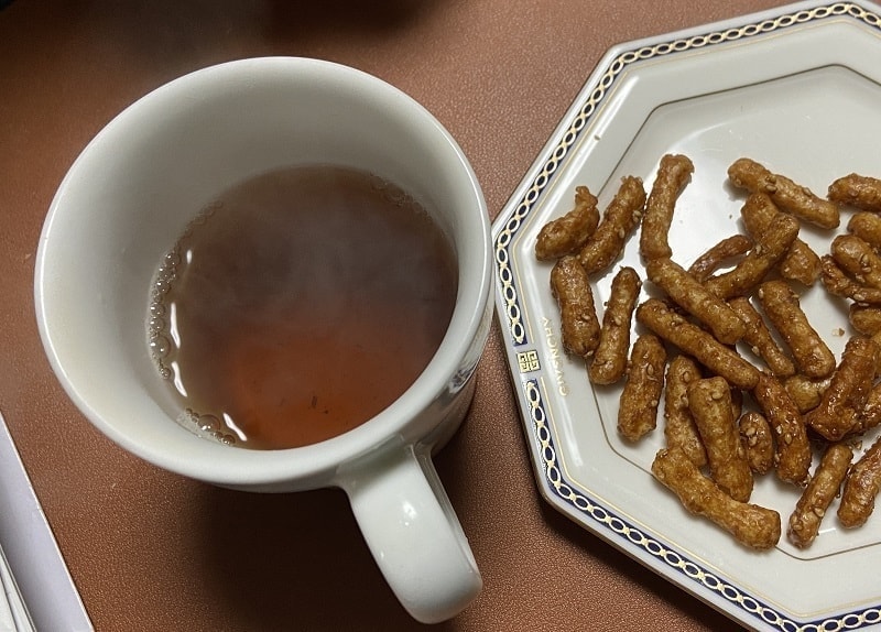 カクキュー(合資会社八丁味噌)の味噌を使った創業大正11年の岡崎の三州菓子工房(中田屋さん)のかりんとうです。ほうじ茶で一服。いい時間です。