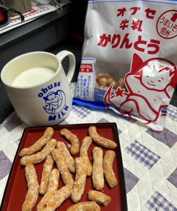 オブセ牛乳を使用した蜜をかりんとうにからめてあるそうで、むろん牛乳との相性も抜群でした。地方のスーパーってほんとワクワクです。
