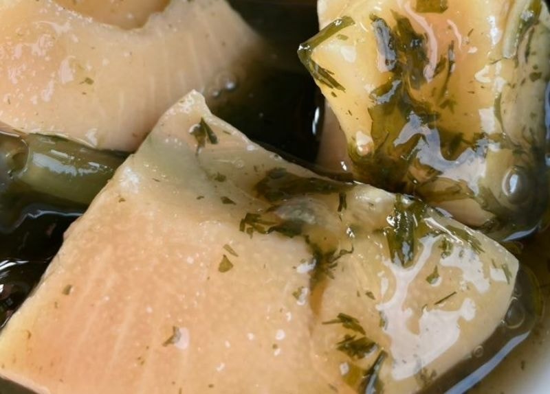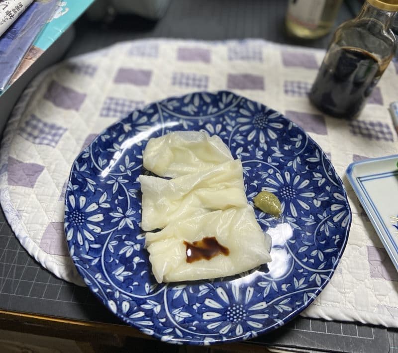 嬉しいことにケチな切り方でなくごっそりと大きく切られた刺身を使った手作り昆布締めと、筍煮を初日の宴のために準備してきていただきました
