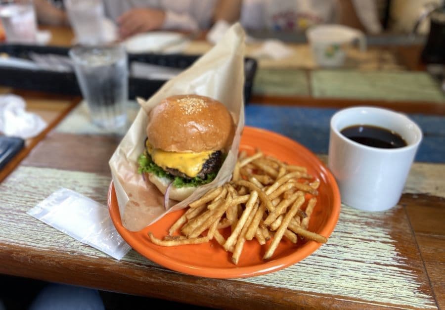 ご飯は大盛りをチョイス。屋外テラスでの食事とさせていただきましたが、残暑が残るものの、時折の風がここちよく、ジューシーなロースカツと共に何気ない幸せを感じる昼時でした。