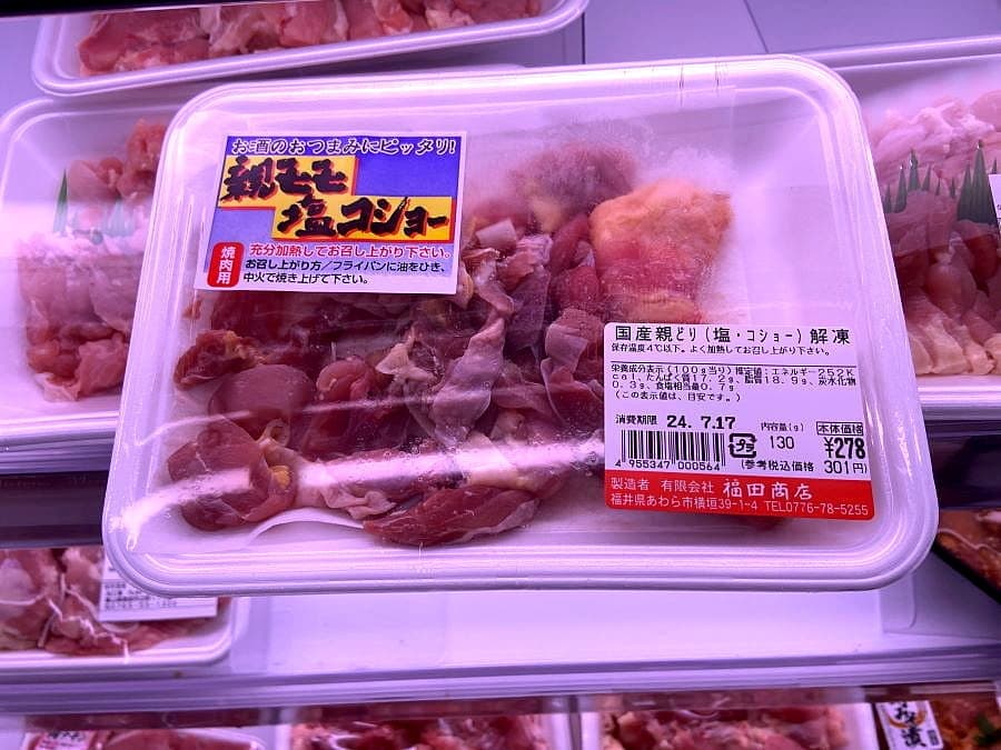 そんな悩みを帰省先の山仲間の同窓会で話したところ、親鶏が売られているスーパーの情報を入手。帰路そのスーパー店舗をのぞいてみたところ、ありました。