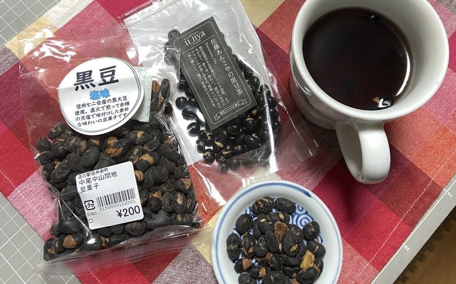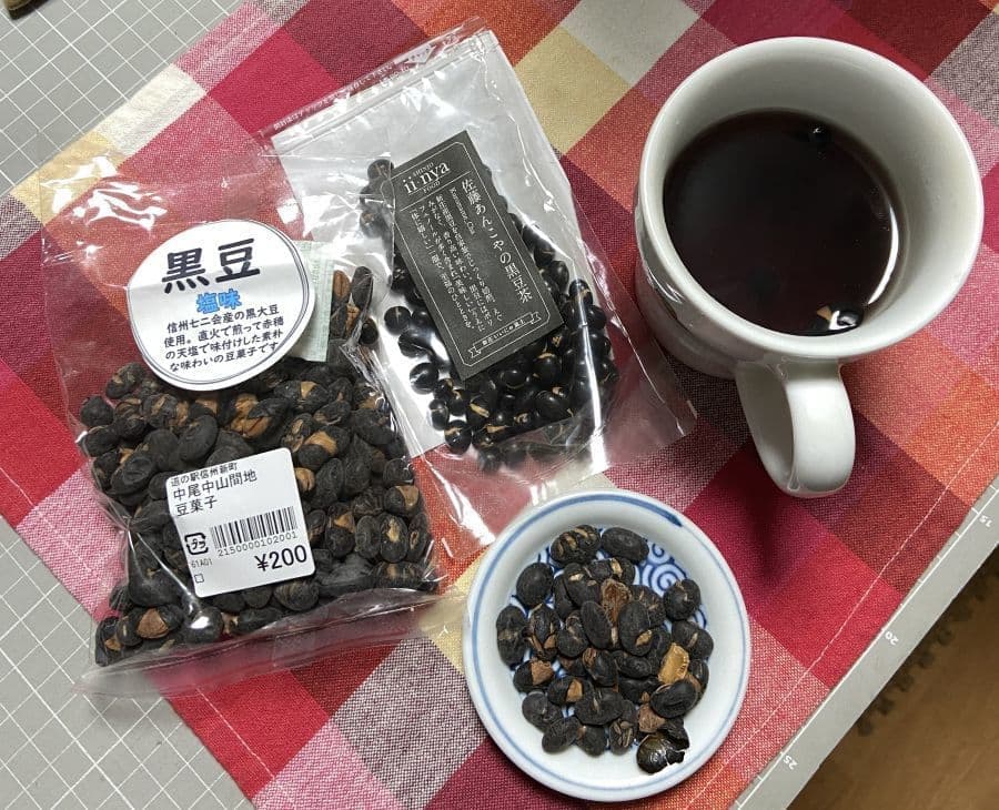 この黒大豆の煎り豆を、新庄(山形)の佐藤あんこやさんの黒豆茶と一緒に頂きました。