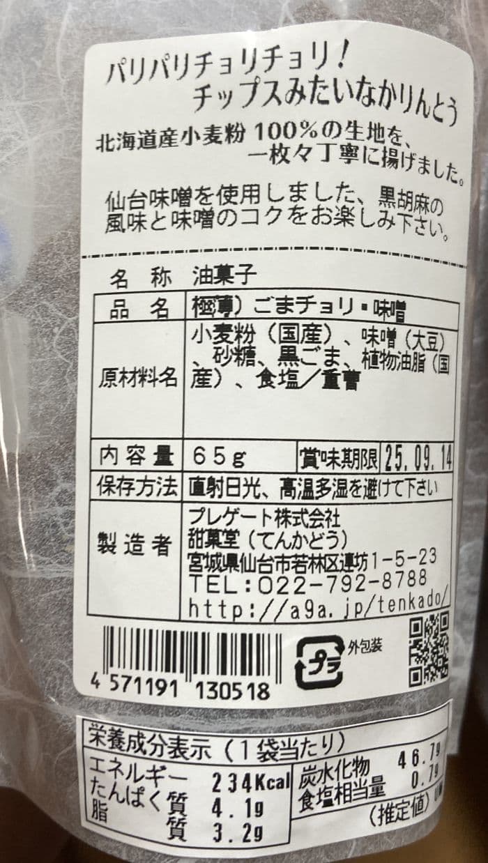 「仙台味噌ごまチョリかりんとう」は仙台市若林区の甜菓堂 (てんかどう)さん