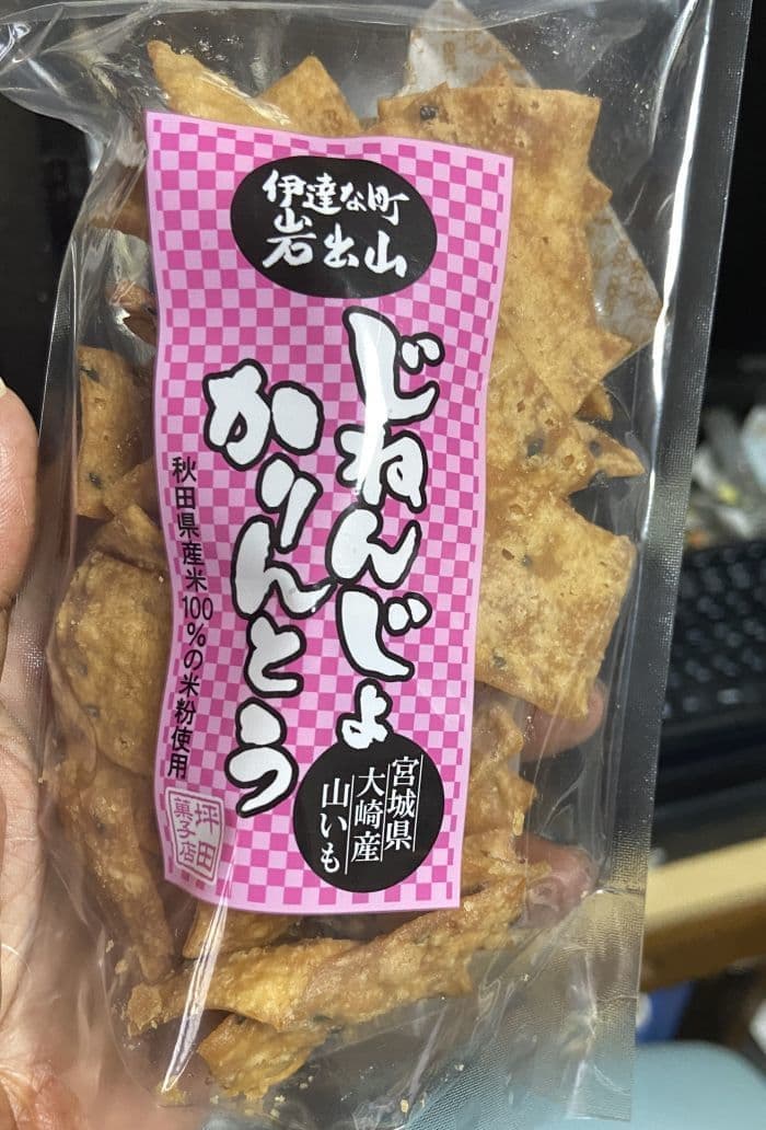 共に板状のかりんとうです。仙台駅で新幹線のお供に購入。癖になりそうな味です。