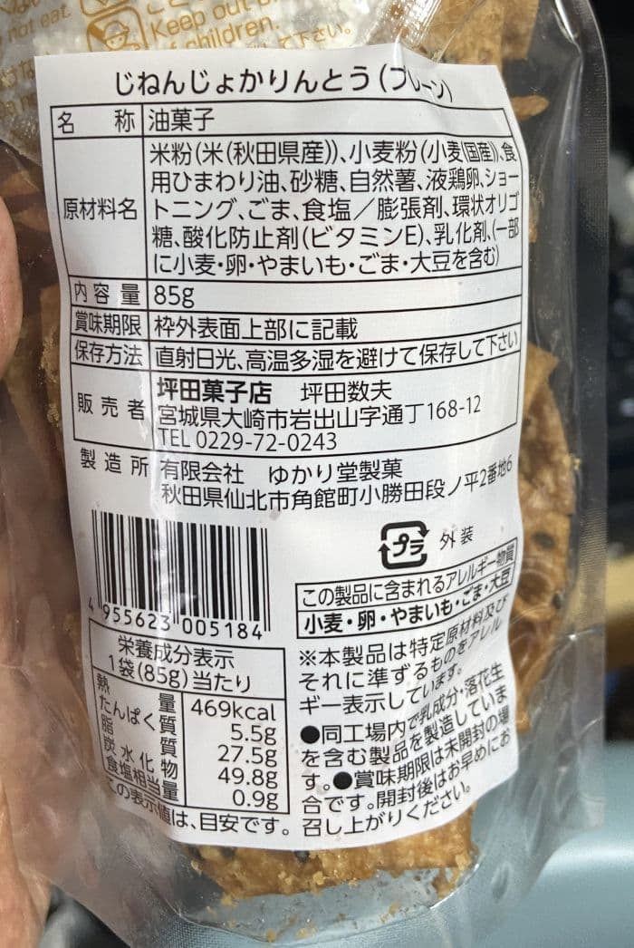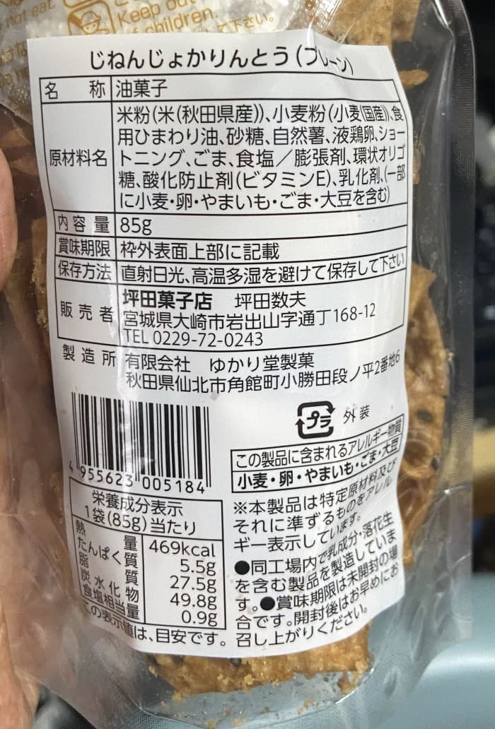 「じねんじょかりんとう」秋田仙北市角館町のゆかり堂製菓さん