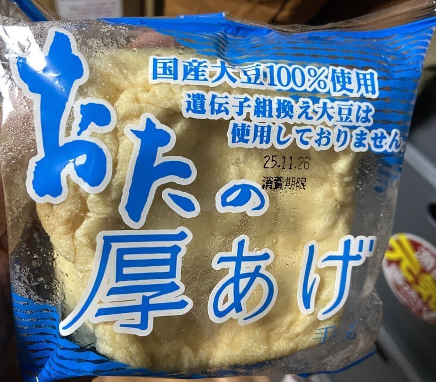 そんな中、一方でその豆腐感を残した分厚い厚揚げが、江戸時代末期に織田町大王丸(旧福井県丹生郡織田町、現在の越前町、名前の通り織田町は織田信長一族発祥の地ともいわれます)で創業のウスヤ食品さんの厚揚げです。