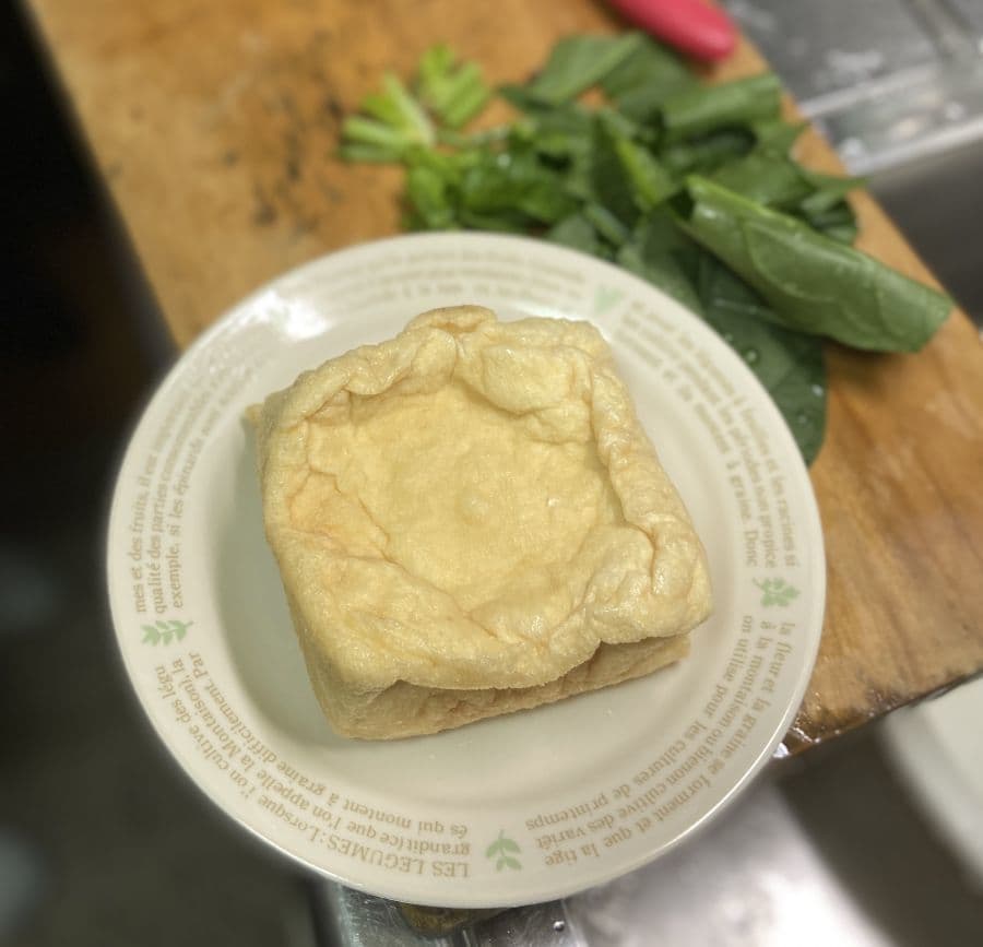 特徴としては中身までしっかり揚げられ、豆腐に厚揚げの衣をつけたような厚揚げとはものが違います。