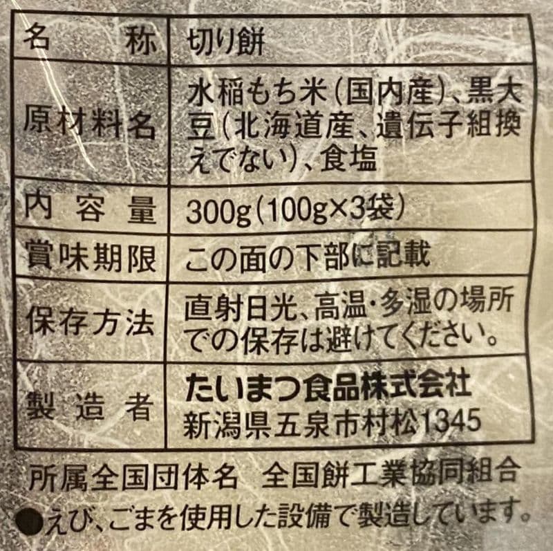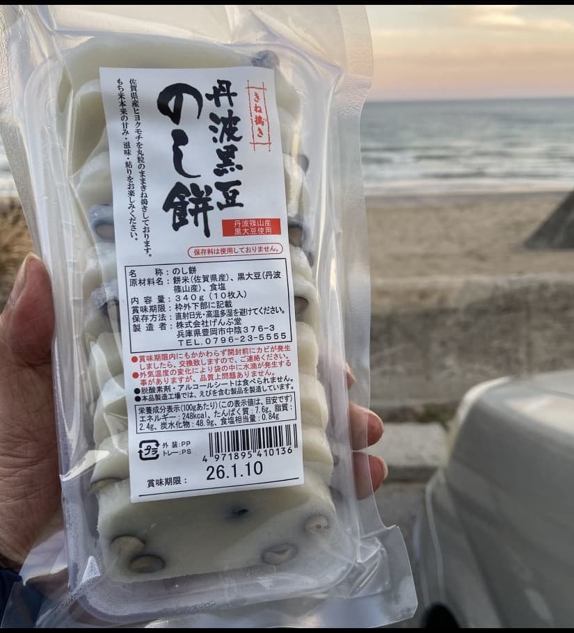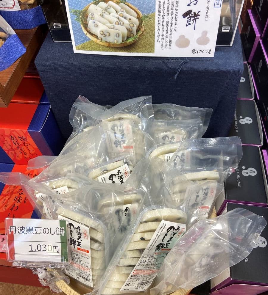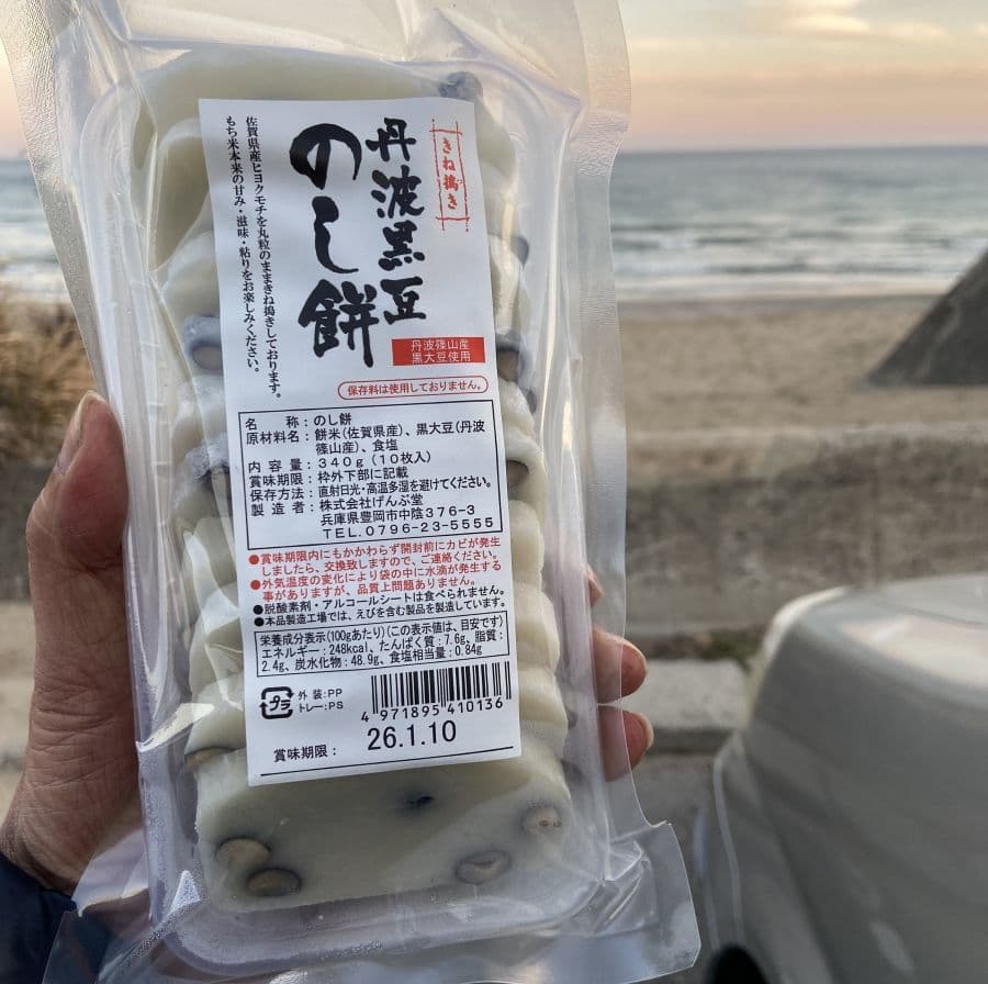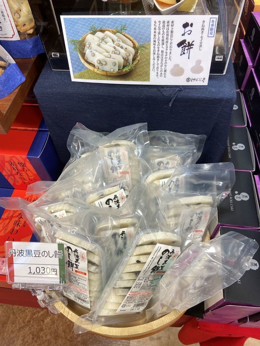 おかきなどを製造している豊岡市のげんぶ堂さんの「冬期限定商品-杵つき 丹波黒豆のし餅」。